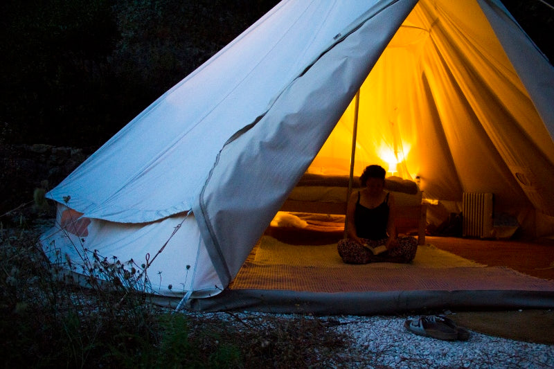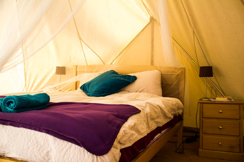 These spacious, airy bell tents are tucked beneath the trees, where moonlight filters through canvas and birdsong wakes the soul.